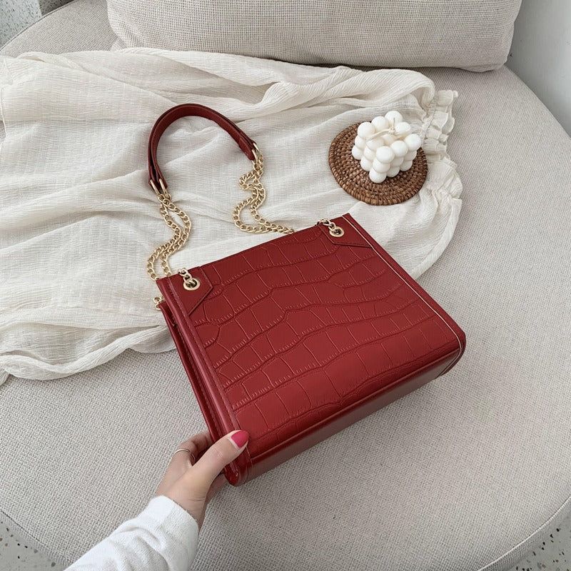 Sac Besace à Main Bandoulière Cuir Crocodile Carré